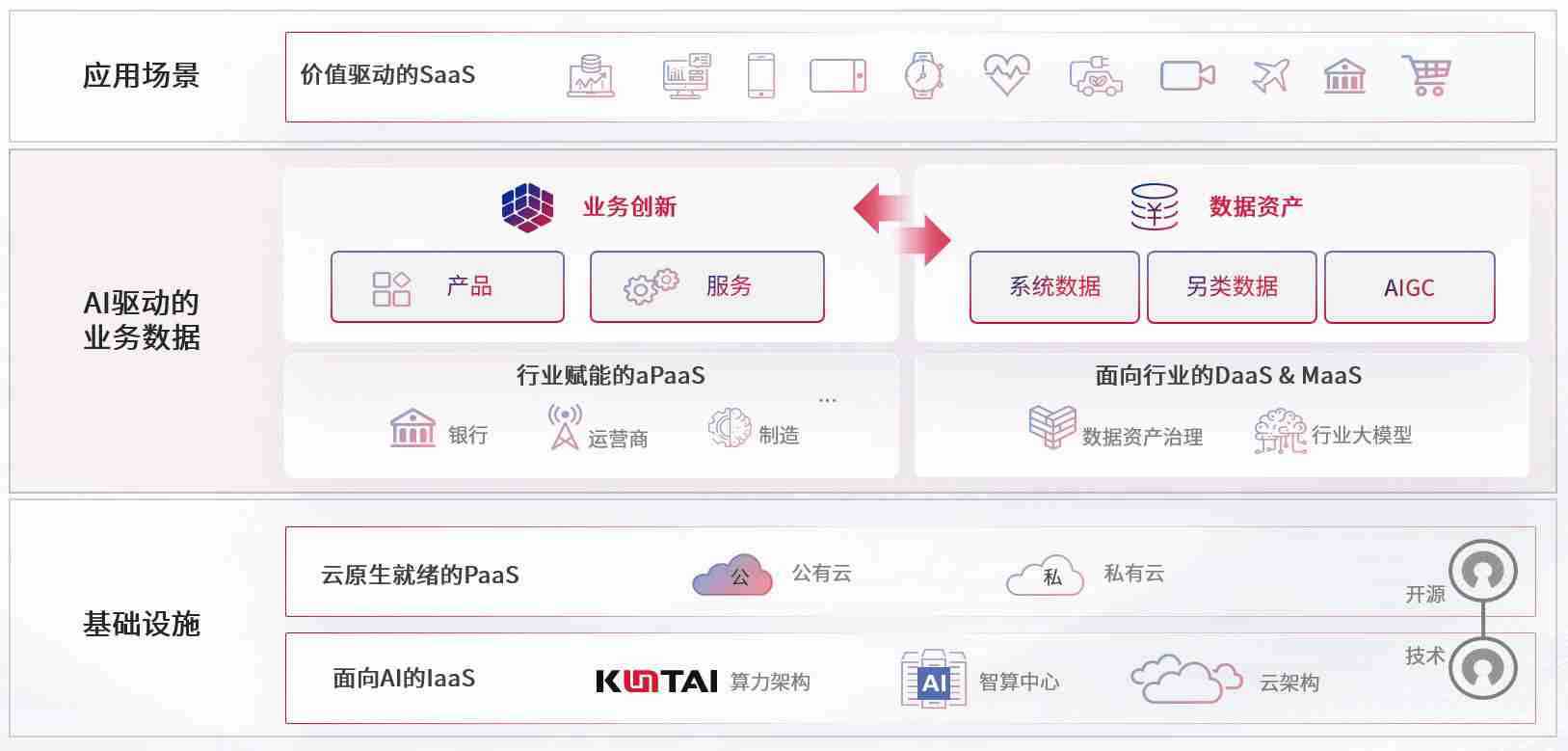 数字时代,,围绕企业数字化转型的关键要素,,尊龙z6数码开创性的提出数云融合战略和技术体系框架,,,着力在云原生、、、数字原生、、、、AI原生和信创产业上架构产品和服务能力,,,为处在不同数字化转型阶段的快消零售、、汽车、、金融、、、、医疗、、、政企、、、教育、、运营商等行业客户提供泛在的敏捷IT能力和融合的数据驱动能力,,,,构建跨界融合创新的数字业务场景和新业务模式,,,,助力企业级客户建立面向未来的核心能力和竞争优势,,全面推动社会的数字化、、智能化转型升级。。。。
