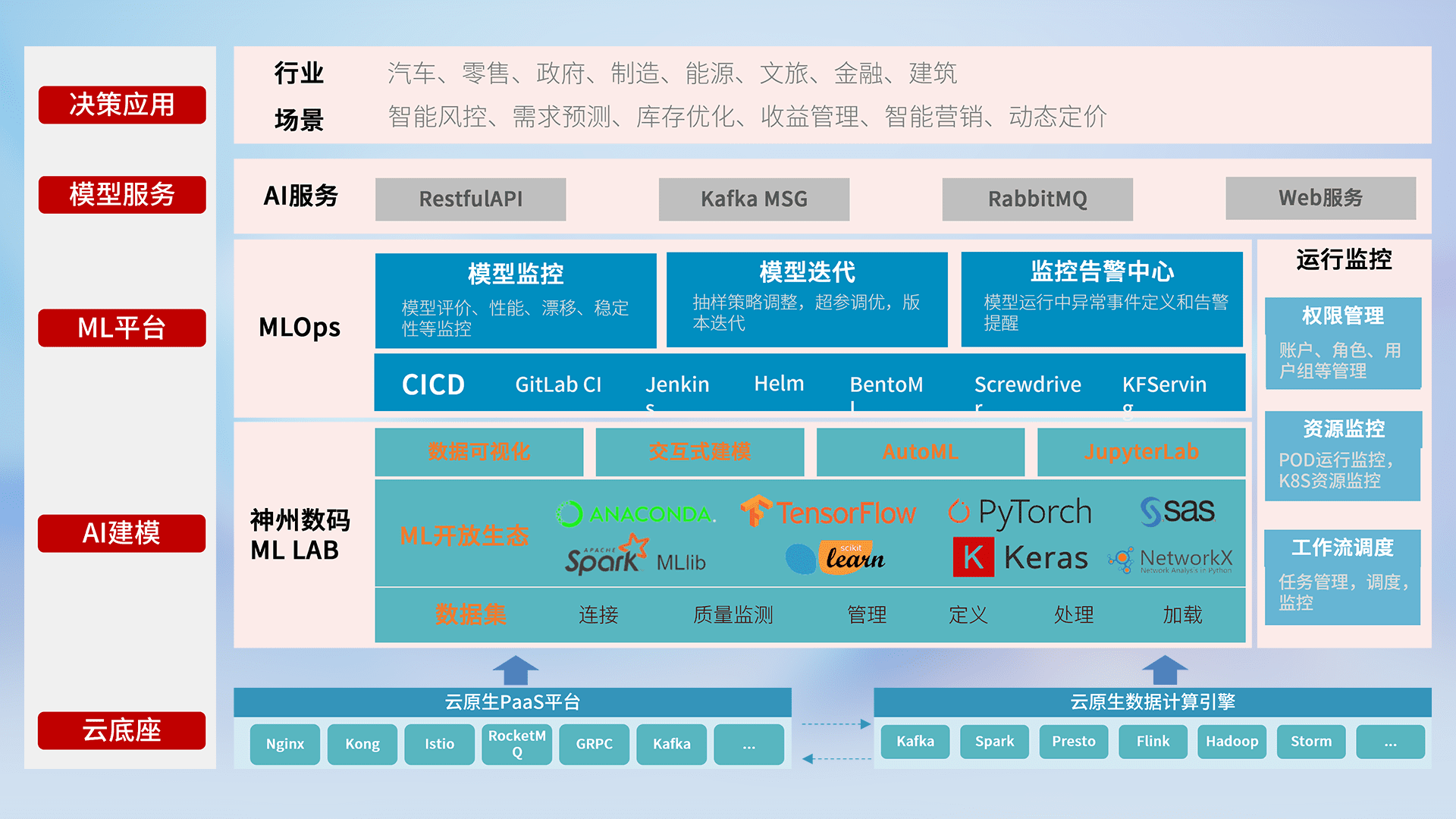 数据+模型双引擎驱动,,,面向智能服务场景,,,,快速灵活利用AI技术,,,,支持业务决策,,,助力企业智能化转型破局。。